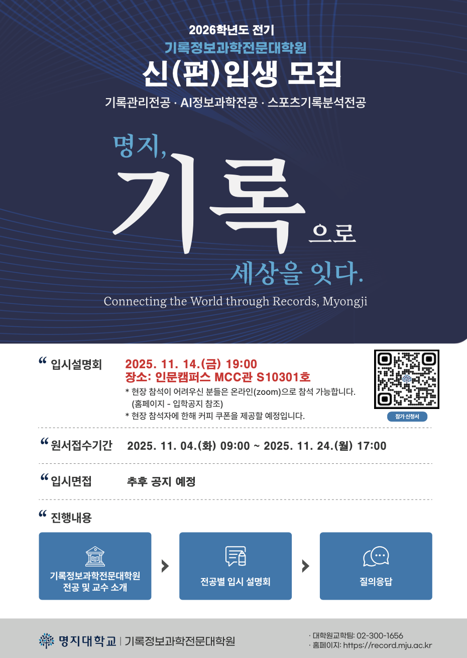 <2026학년도 전기 기록정보과학전문대학원 입시설명회>